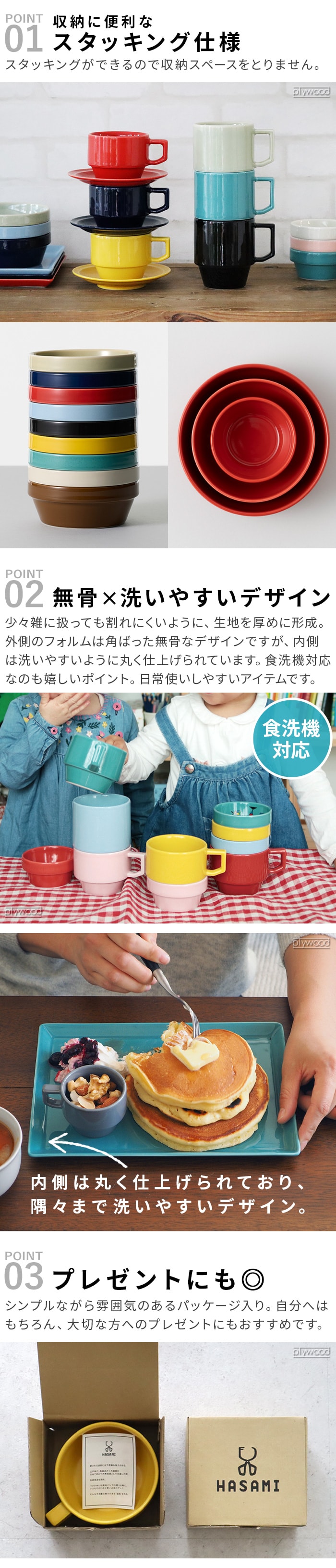 ハサミブランドのテーブルウェア 50~60年代アメリカのひなびたロードサイドのカフェで使われていた大衆食器のような、機能的で洗いやすく少々雑に扱ってもOKな実用的なデザインです。大人の色合いながらも子どもの選ぶTOYブロックのように、色を組み合わせて愉しめるカラーバリエーション。実用的ながらも遊び心のあるテーブルウェアシリーズです。 |