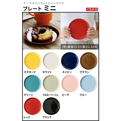 [レッド] 釉薬の成分が結晶となり、白くなる場合がございます。 レッドの色味が深くなることもございます。 技法:石灰釉をベースにした色釉 [ブルー(水色)] ゆず肌釉を使用している為、表面が柑橘系のゆずのような質感になります。小さい穴(ピンホール)が出る場合がございます。 釉薬の成分が茶色がかった斑点になる場合がございます。 技法:ハーフマット釉・ゆす灰釉・柚子肌釉 [イエローベージュ] 一般的な黄色よりも、やや青みがかったベージュに近い色です。 ※焼き上がりによってはかなり青みが強い場合がございます。 技法:ハーフマット釉・ゆす灰釉 [グリーン] 釉薬に鉄粉を配合しているため、薄茶色の点の模様が出ます。 技法:砂や鉄粉を混ぜた釉薬 [ブラウン・ブラック] 技法:石灰釉をベースにした色釉(いろゆう) [ホワイト] 焼き上がりによってやや黄みがかる場合がございます。 技法:石灰釉をベースにした色釉(いろゆう) [マスタード] 釉薬の成分が黒い斑点になる場合がございます。 技法:石灰釉をベースにした色釉(いろゆう) |