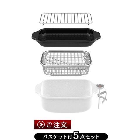 | ≪4点セット≫ 鍋本体×1、バット×1、スノコ網×1、温度計×1 ≪5点セット≫ 鍋本体×1、バット×1、スノコ網×1、温度計×1、フライヤーバスケット×1 |