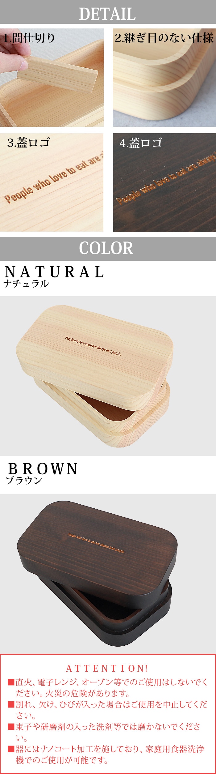 約190年の歴史を持つ角田清兵衛商店は 創業よりずっと変わらず、品質や意匠にこだわり漆のモノ作りを行ってまいりました。&NUTから紀州桧の美しい木目を活かしながら、無垢材の塊からくり抜き、丁寧に削り出した継ぎ目のないお弁当箱が登場。削り出し成形後から仕上げ・磨きなどの工程は熟練の職人が一つひとつ手作業で行う為、一日に10個程しか作ることが出来ない希少でとても繊細な作りになっています。