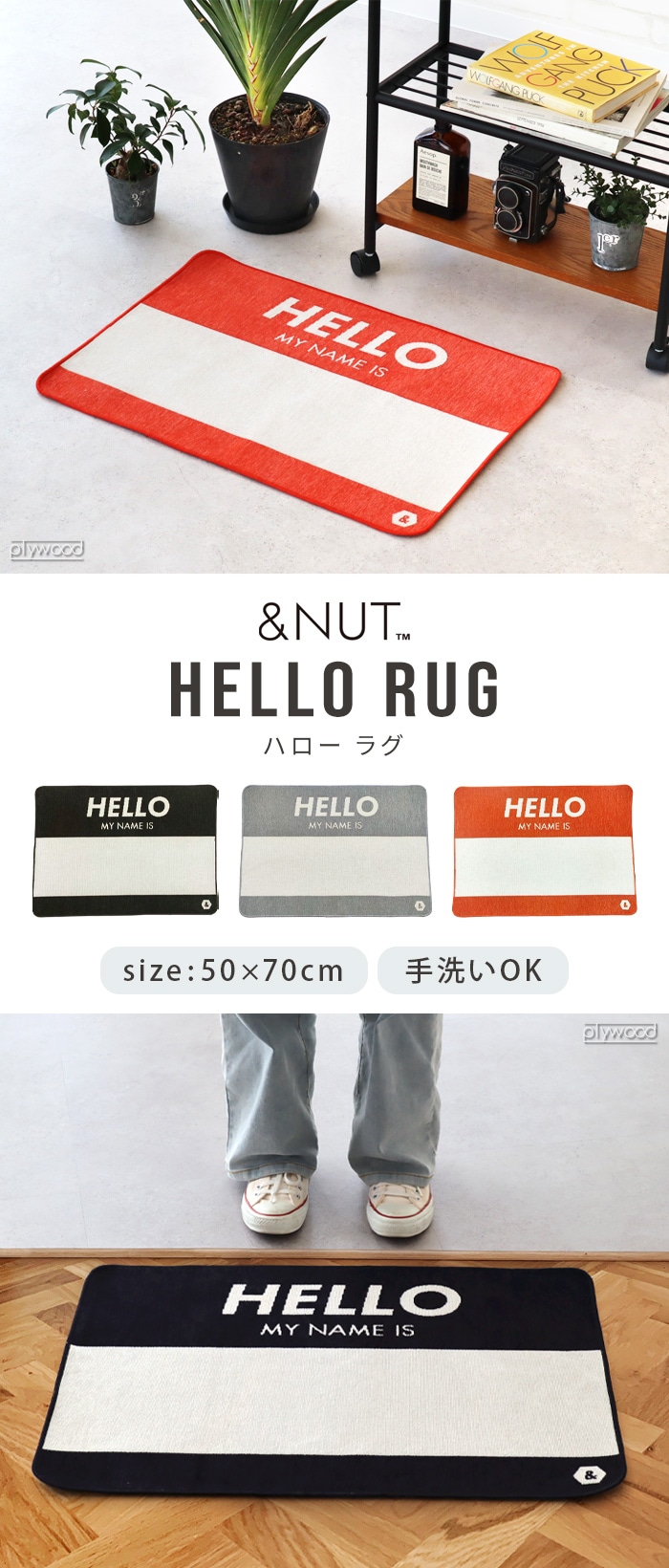 アンドナット ハロー ラグ &NUT HELLO RUG ≪グレー≫ ラグマット 小さめ 長方形 洗える おしゃれ 滑り止め 玄関マット 室内 かわいい アメリカン 新生活 来客 生活雑貨 インテリア ギフト
