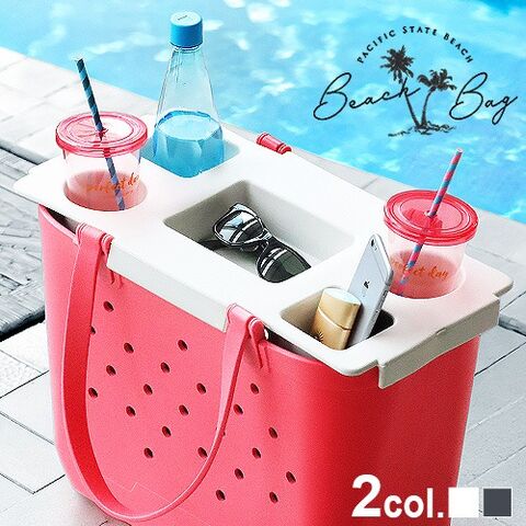 ビーチバッグトレイ Lサイズ用 ≪ホワイト VBFS-002WH≫ バッグ別売 ドリンクトレー カップホルダー サイドテーブル 簡易テーブル レジャー 海水浴 花火大会 運動会 ピクニック お花見 撥水 洗える バスケット かごバッグ