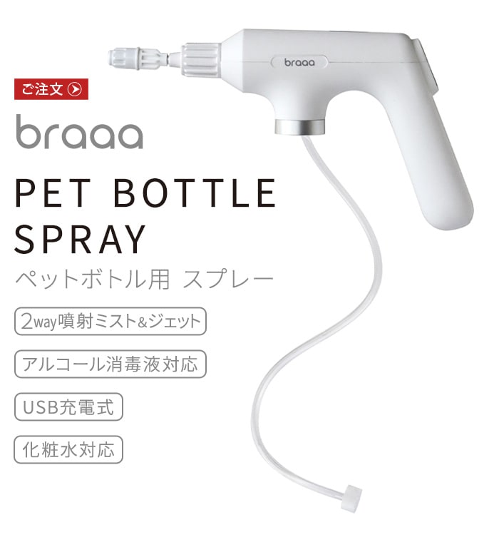 braaa ブラー ペットボトルスプレー ≪ホワイト VBGD002-WH≫ ミスト 噴霧器 電動 コードレス 化粧水 充電式 アルコール 散水 水やり 霧吹き 細かい じょうろ 電動スプレーボトル 小型 家庭用 大容量 おしゃれ シンプル