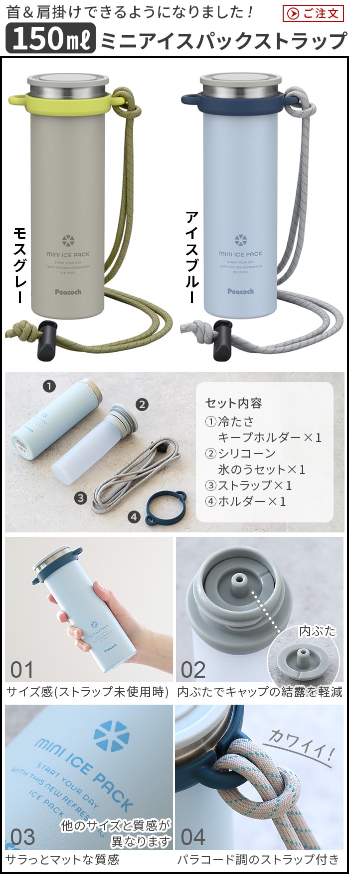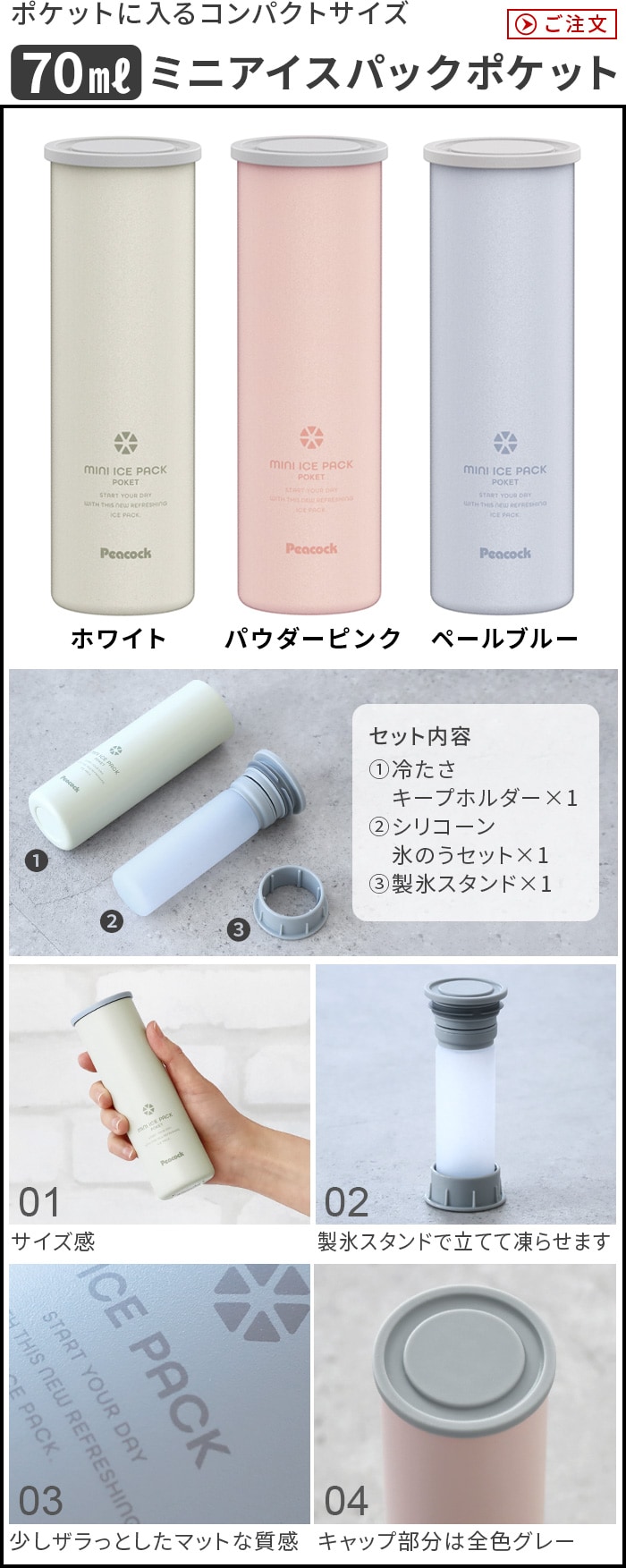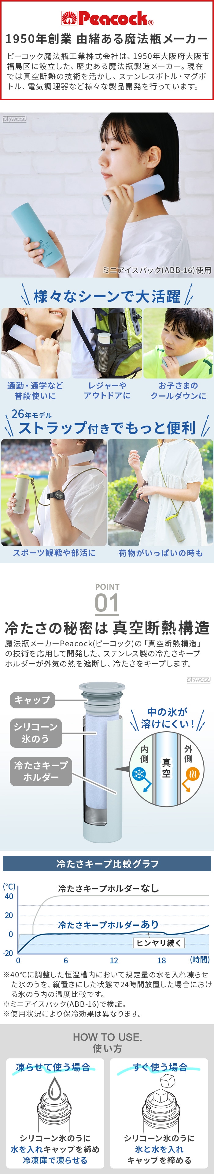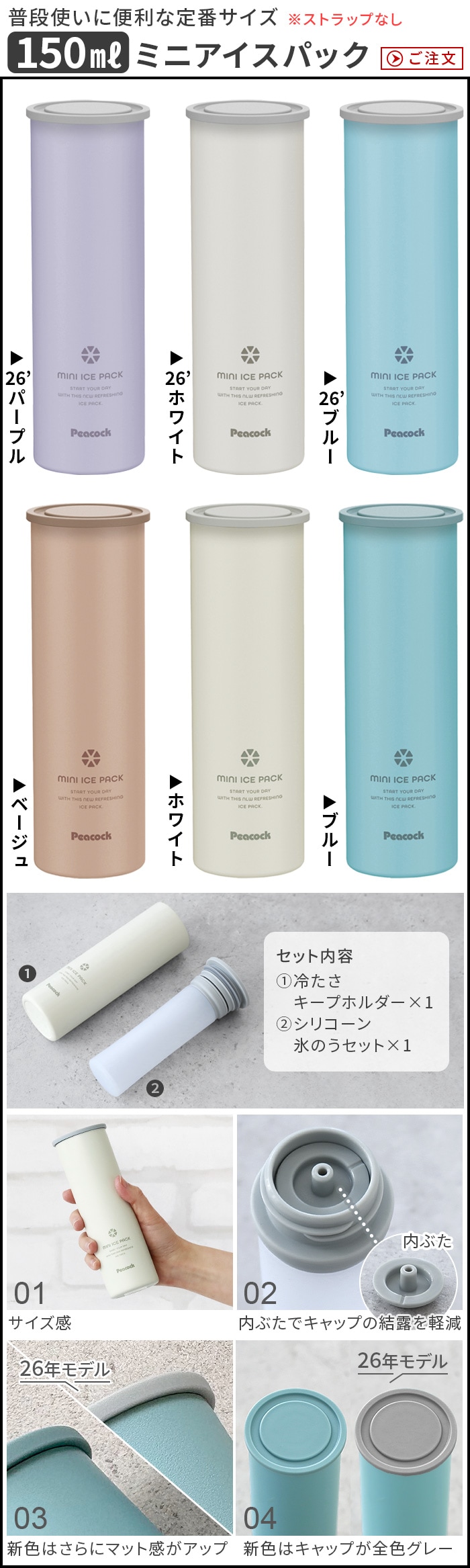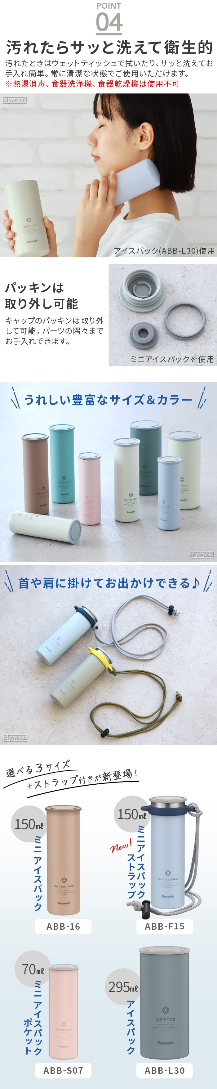 Peacock ピーコック アイスパック シリーズ ミニアイスパック ≪150ml/ホワイト ABB-16≫ 氷嚢 氷のう 持ち運び 魔法瓶 スポーツ 首用 保冷 熱中症対策 おしゃれ 冷却 送料無料