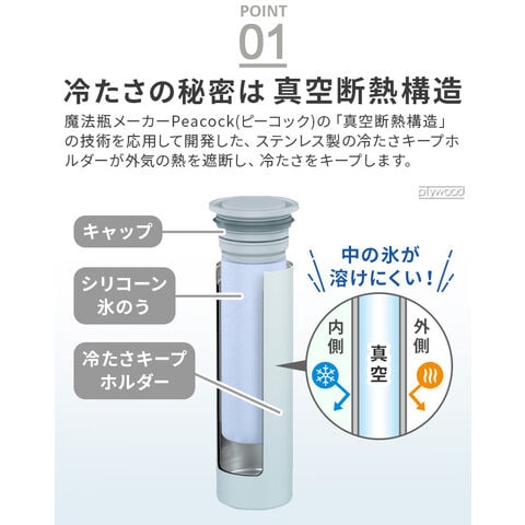 | 冷たさキープホルダー(内びん・胴部):ステンレス鋼 (表面加工 アクリル樹脂塗装) 氷のう本体:シリコーンゴム 氷のう口金:ポリプロピレン 氷のうキャップ:ポリプロピレン パッキン:シリコーンゴム |