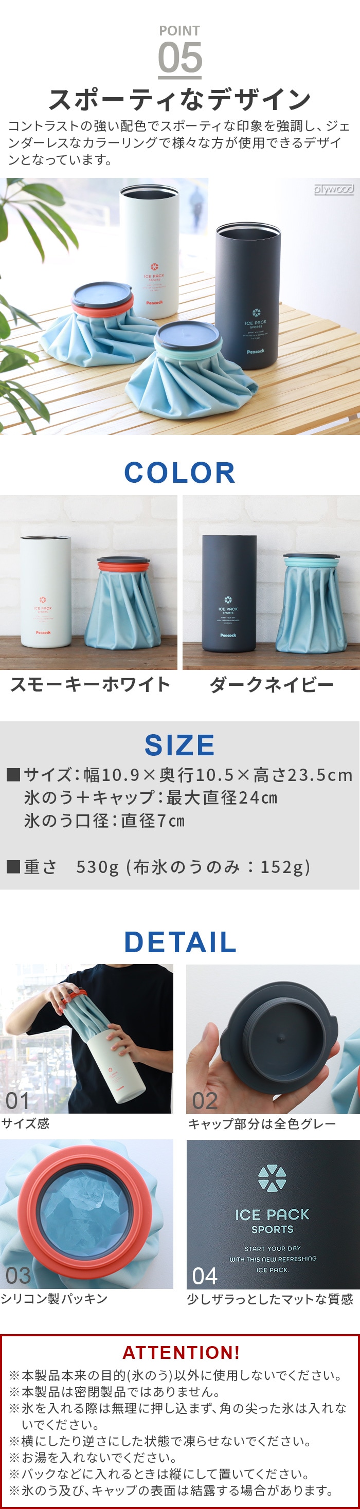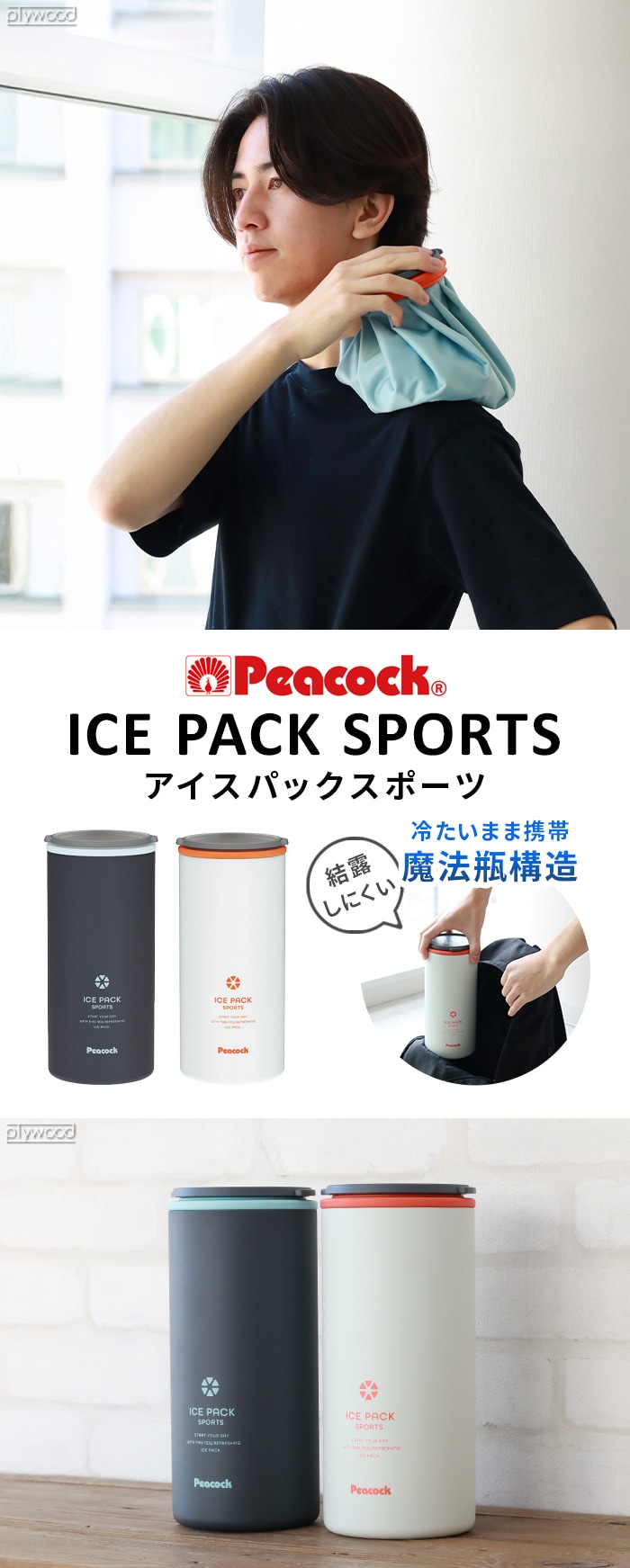 【2月末発送予定】Peacock ピーコック アイスパック スポーツ ≪スモーキーホワイト ABC-150≫ 氷嚢 水筒型 氷のう ボトル 持ち運び 魔法瓶 首用 保冷 熱中症対策 おしゃれ 夏 アウトドア 暑さ対策 ひんやり 冷却 頭 ギフト プレゼント