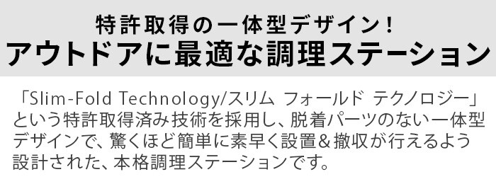 驚くほど簡単に素早くセットアップ! 脱着パーツのない一体型デザインの マルチに使える調理ステーション 25年前にアメリカで誕生したロッキングチェアタイプ中心の商品を多数発信し、全米から高い評価を得るブランド「GCI Outdoor」から、アウトドアに最適!かしこいギミックを搭載する調理ステーションのご紹介です! ※調理用バーナー、ギア等は付属しません。 |