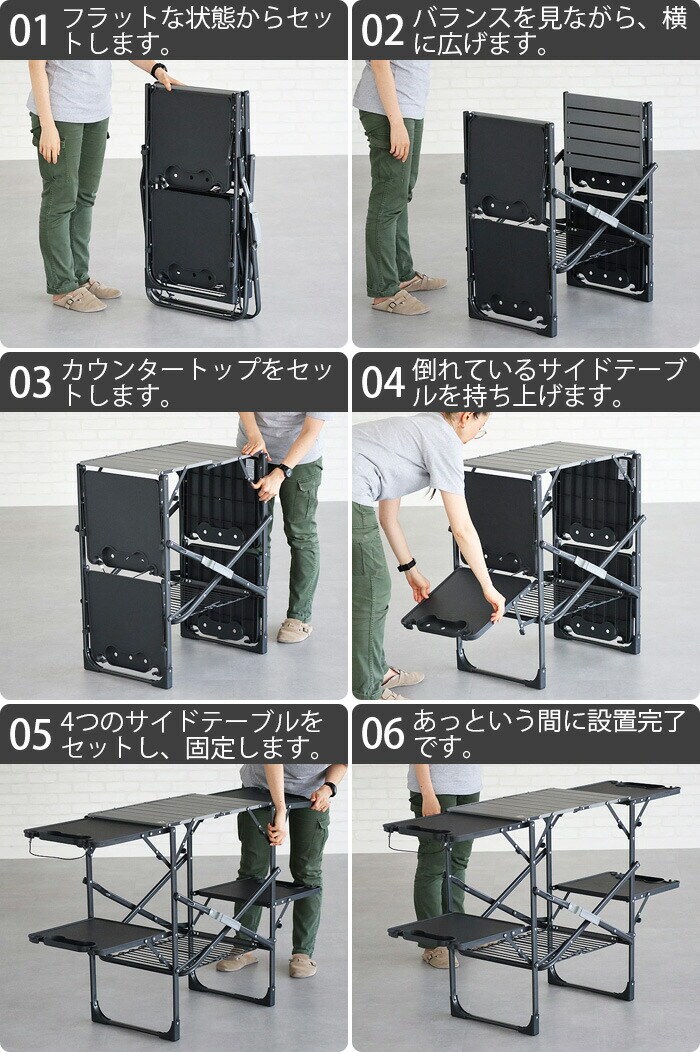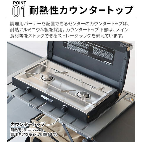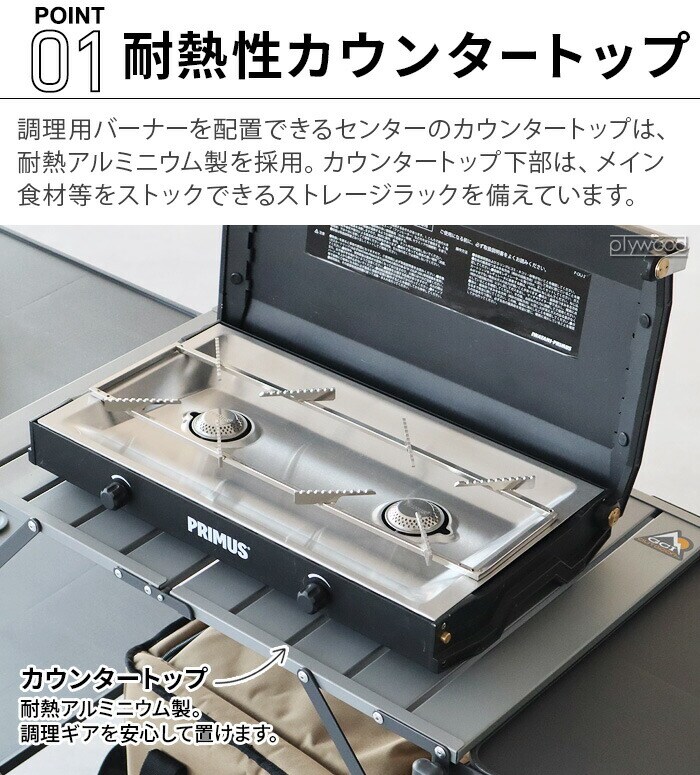 | 組み立て式です。 アルミ製の上部にキャンプ用ストーブを安全に使用してください。(耐熱テーブルトップ) |
