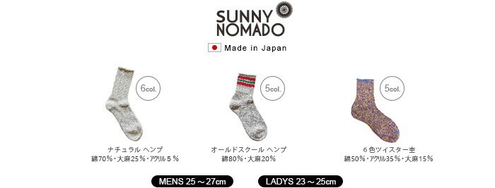 SUNNY NOMADO ナチュラル ヘンプ ソックス《23〜25cm/グレー TMSO-001》靴下 レディース メンズ おしゃれ 暖かい ソックス コットン 厚手 ヘビーオンス デザイン おすすめ かわいい 日本製 足冷え 冷え性 冷え対策 hemp ヘンプ プレゼント ギフト 女性 男性