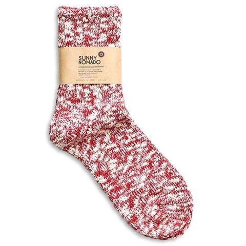 SUNNY NOMADO ナチュラル ヘンプ ソックス《25〜27cm/レッド TMSO-001》靴下 レディース メンズ おしゃれ 暖かい ソックス コットン 厚手 ヘビーオンス デザイン おすすめ かわいい 日本製 足冷え 冷え性 冷え対策 hemp ヘンプ プレゼント ギフト 女性 男性