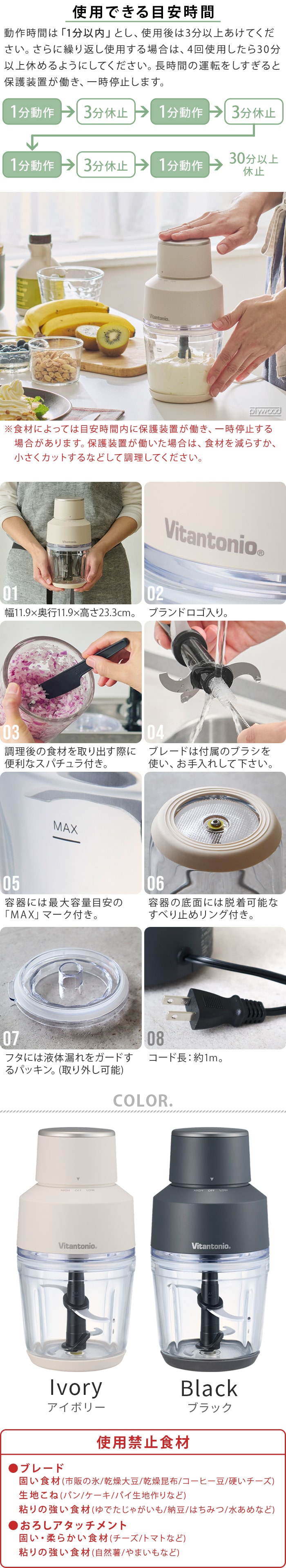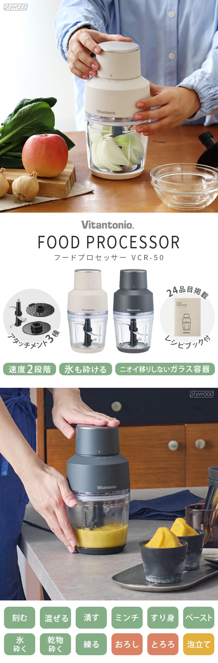 ビタントニオ フードプロセッサー コンパクト Vitantonio ≪ブラック VCR-50-K≫ 小型 大根おろし 離乳食 洗いやすい コンパクト フードカッター ミキサー ガラス アイスクラッシャー おろし 泡立て ブレンダー かき氷機 生クリーム 電動 おしゃれ スムージー