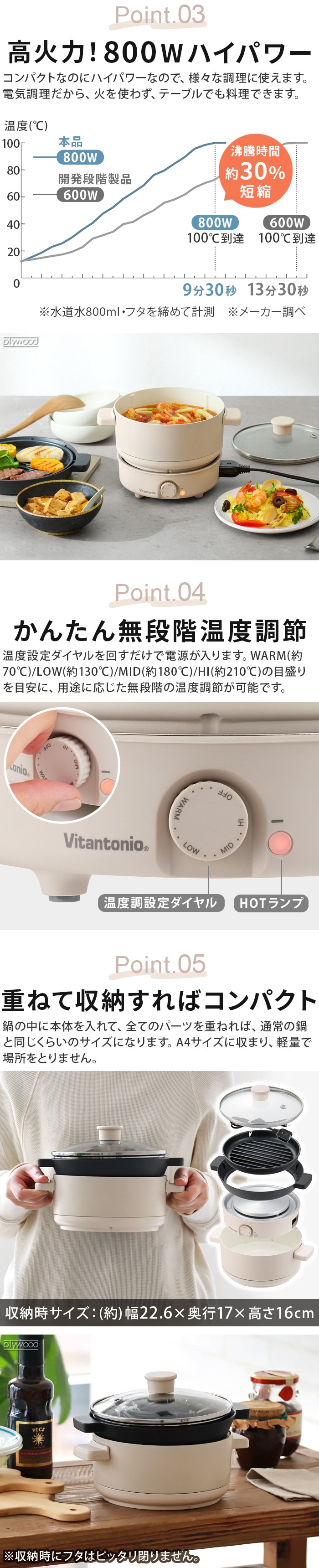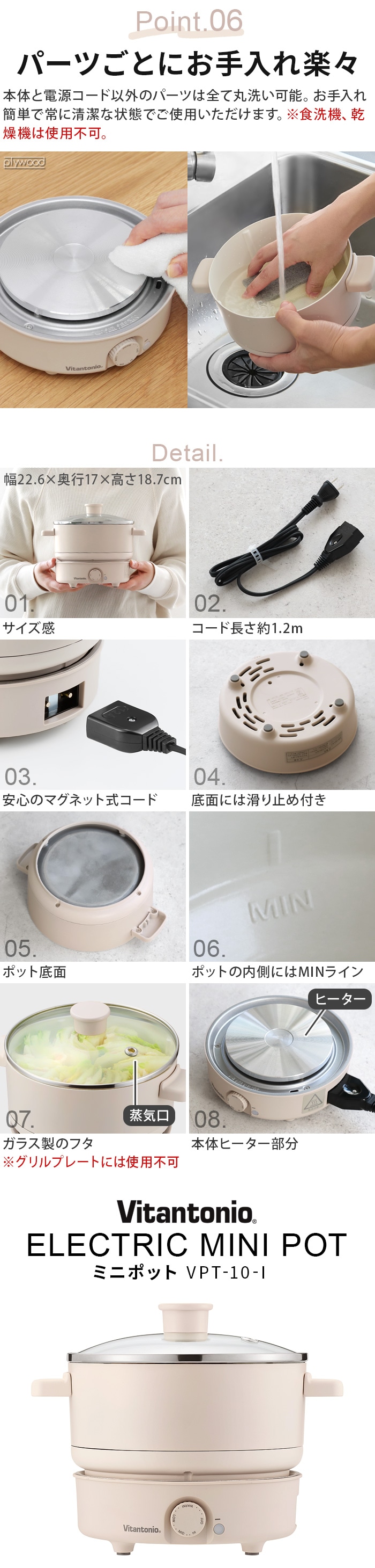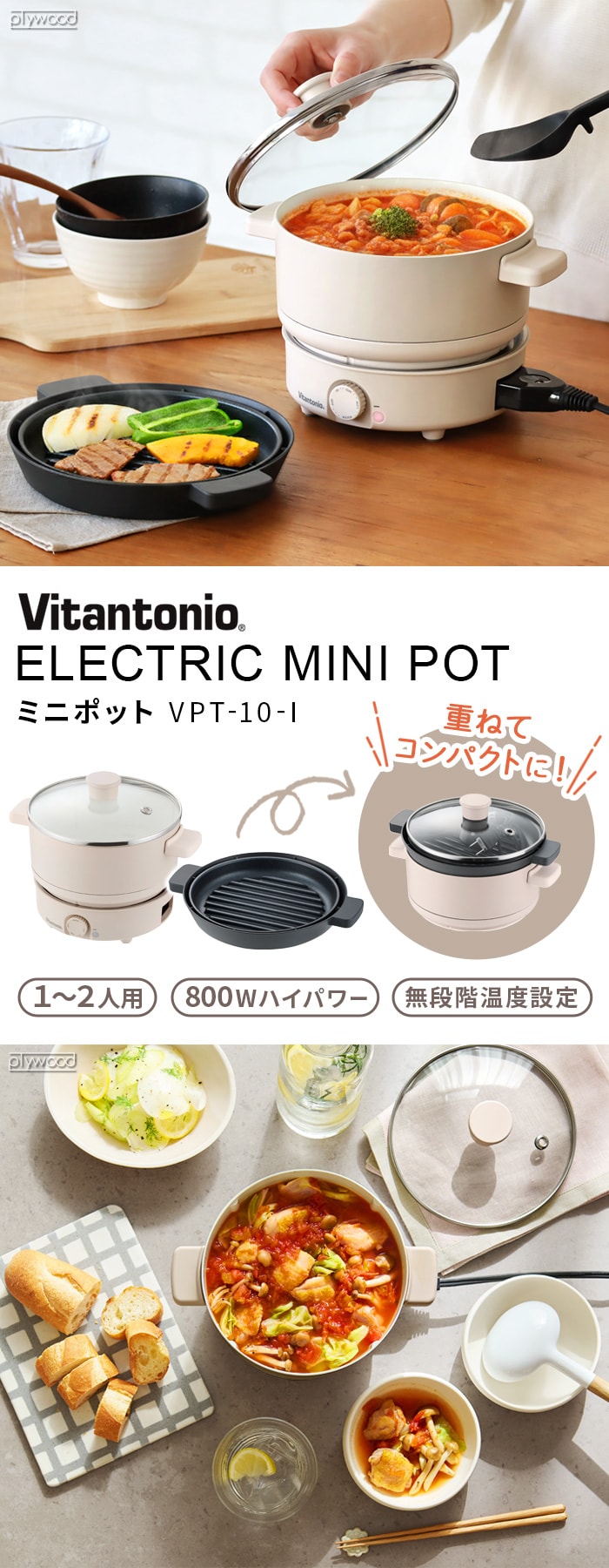 Vitantonio ビタントニオ ミニポット ≪VPT-10-I≫ 電気鍋 1人用 2人用 グリル鍋 卓上 おしゃれ 一人暮らし 焼肉 炊飯 温度調節 コンパクト 高火力 蓋付き ホットプレート 新生活 パーティー 結婚祝い プレゼント ギフト