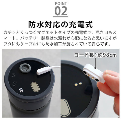 | 保温・保冷機能あり 充電式リチウムイオン電池 BPAフリー 防水加工 |