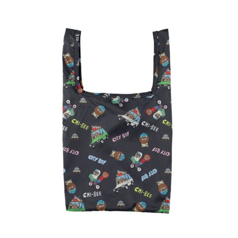 chi-bee chi-chai bag チービー チーチャイバッグ ≪ブラック 63-b≫ エコバッグ 小さめ 折りたたみ コンパクト マチ付き おしゃれ ゆるキャラ ポケッタブル 軽量 リップストップ加工 マイバッグ ショッパー 手提げ コンビニ