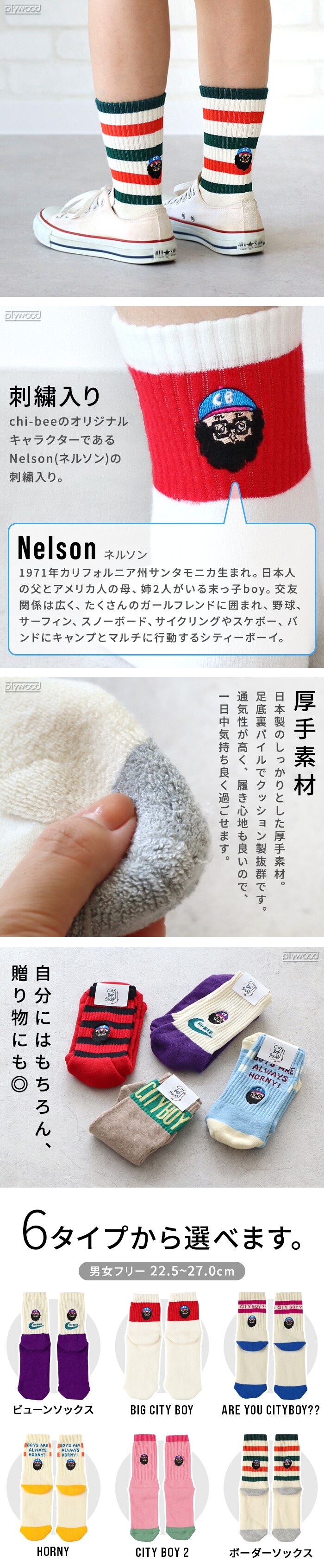 chi-bee Nelson Outdoor Socks ネルソン アウトドア ソックス ≪HORNY/オートミールxブラウン≫ 靴下 厚手 メンズ レディース おしゃれ スニーカー スケーターソックス クルーソックス