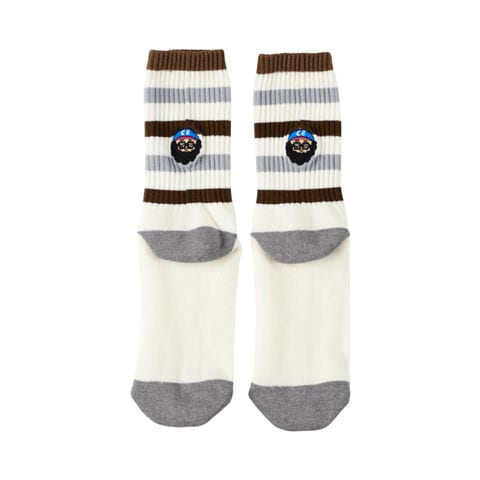 chi-bee Nelson Outdoor Socks ネルソン アウトドア ソックス ≪ボーダー/ホワイトxグレーブラウン≫ 靴下 厚手 メンズ レディース おしゃれ スニーカー スケーターソックス クルーソックス