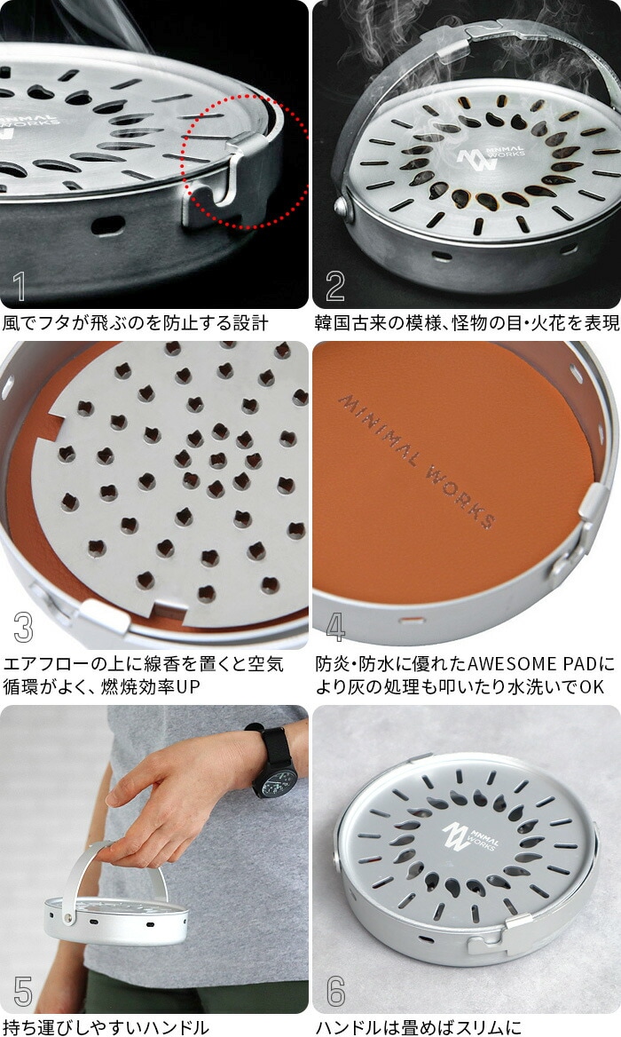 ミニマルワークス 蚊取り線香ホルダー 蚊遣 minimal works MOGIBUL MGAC-SM000-GO0SI 蚊取り線香ホルダー 蚊取り線香入れ おしゃれ キャンプ アウトドア 持ち手付き 蓋付き 吊り下げ 玄関 携帯 室内 室外 持ち運び 虫対策 雑貨