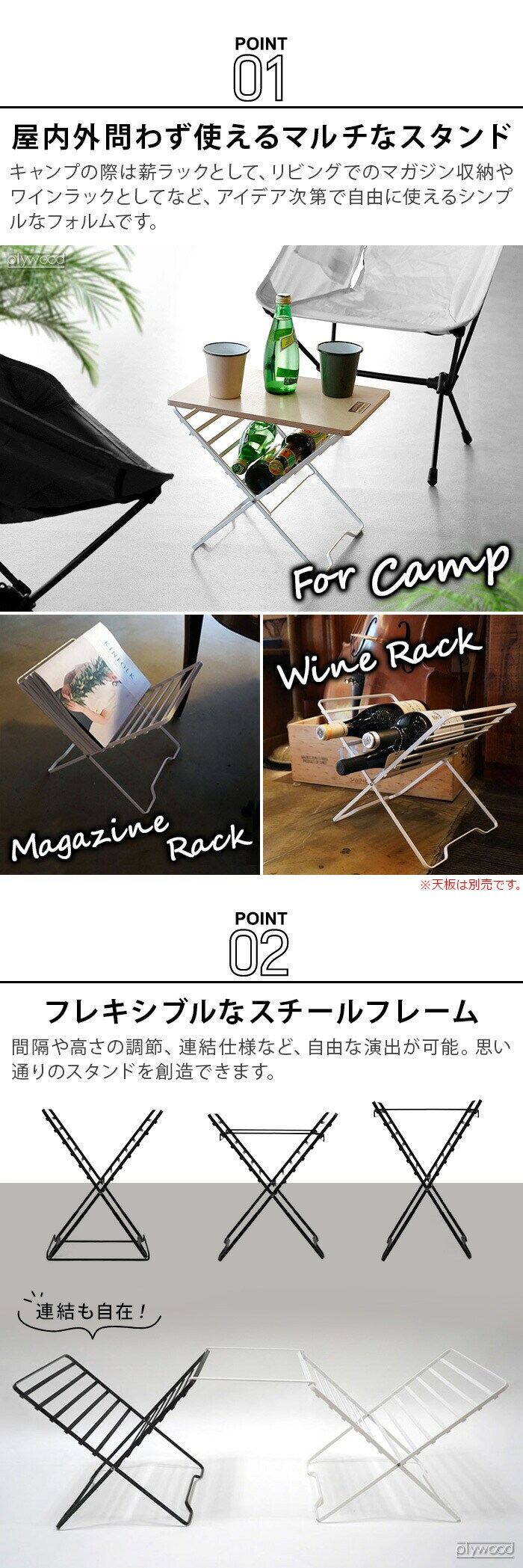 韓国の新進気鋭ブランド VERNE マルチに使えるスチール製スタンド 韓国発のギアブランド「VERNE(ベルン)」から、シンプルで洗練されたフォルムが特長のログスタンドのご紹介です。VSTシリーズの別売ウッドプレートと組み合わせが可能なログスタンド。間隔や高さの調節、連結仕様など自由な演出が可能で、コンパクトに収納できます。 |