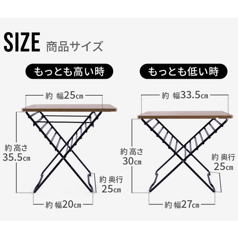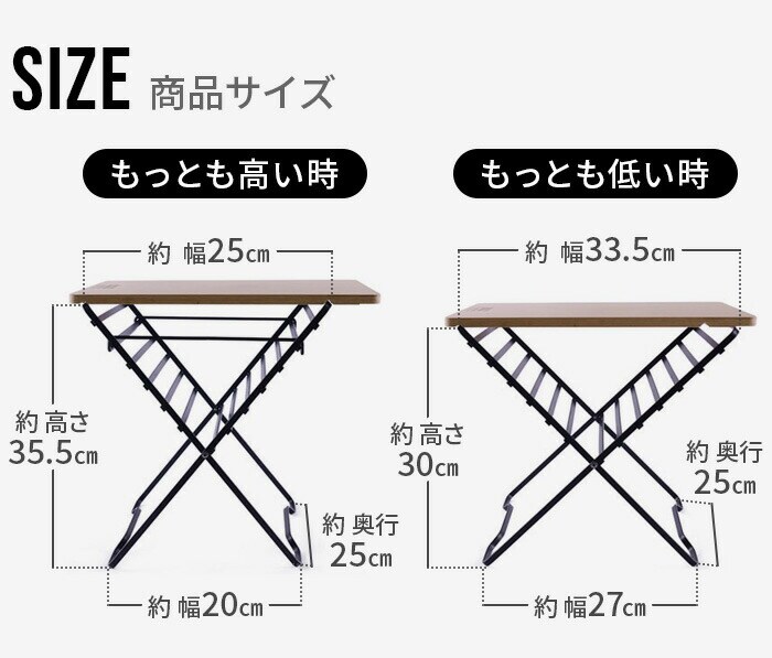 | 使用時:(約)幅25~33.5×奥行25×高さ30~35.5cm 収納時:(約)幅25×奥行1.4×高さ42cm |