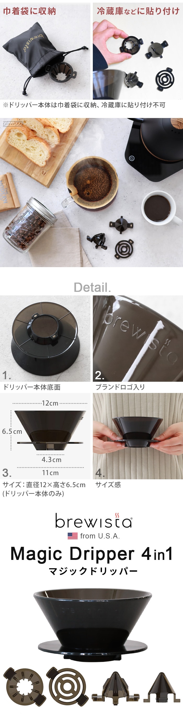 ブリューイスタ マジックドリッパー Brewista Magic Dripper 4in1 ≪BX-PD001≫ コーヒードリッパー おしゃれ 1~2杯用 シンプル 珈琲 ドリップ器具 円錐 1台4役 ハンドドリップ アウトドア ギフト キャンプ 父の日 母の日
