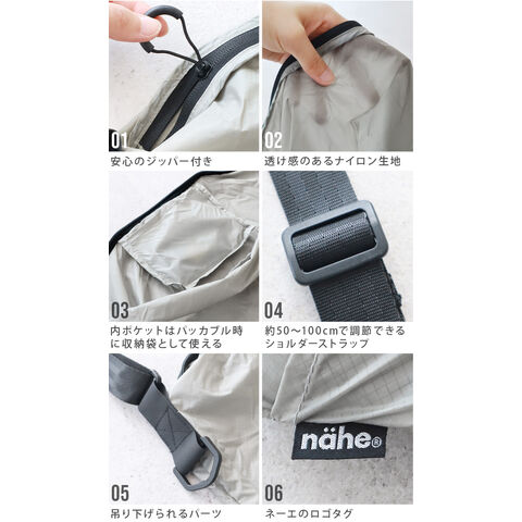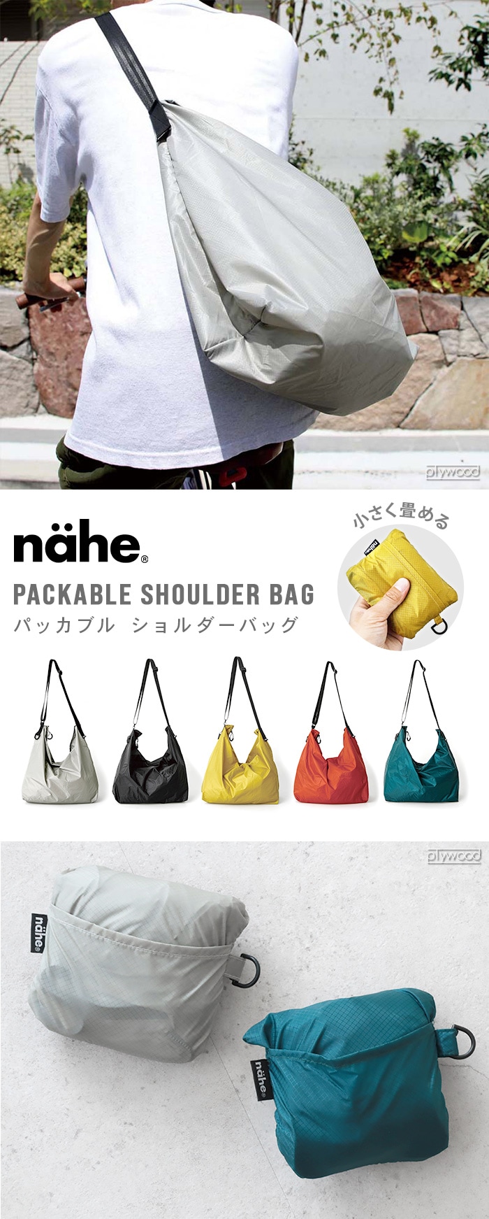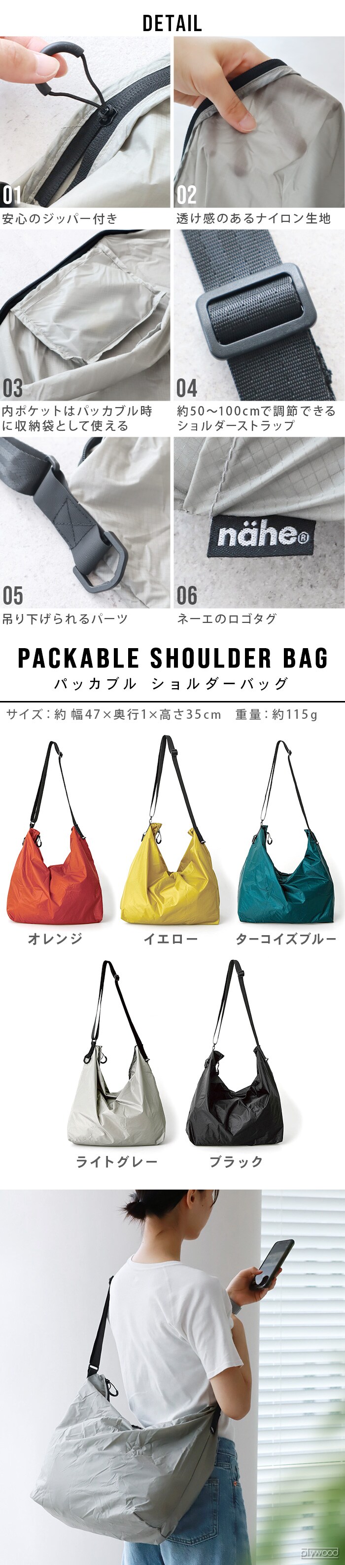 ネーエ パッカブル ショルダーバッグ nahe Packable Shoulder Bag ≪オレンジ GB329≫ 大容量 レディース メンズ コンパクト 折りたたみ 旅行 軽量 ナイロン 肩掛け 斜めがけ 通勤 サブバッグ トラベルバッグ 通学 防水 おしゃれ サコッシュ ギフト