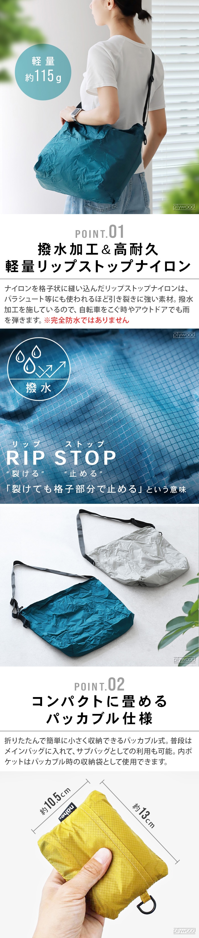 | 本体:(約)幅47×奥行1×高さ35cm ショルダーストラップの長さ調節範囲:約50-100cm パッカブル時:(約)幅13×奥行10.5×高さ4cm |