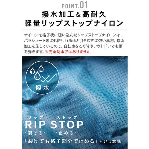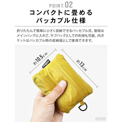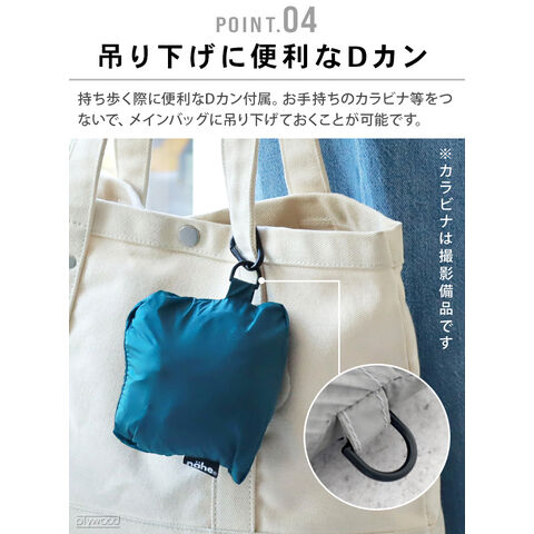 | 撥水加工 小さく畳めるパッカブル式 吊り下げに便利なDカン付属 |