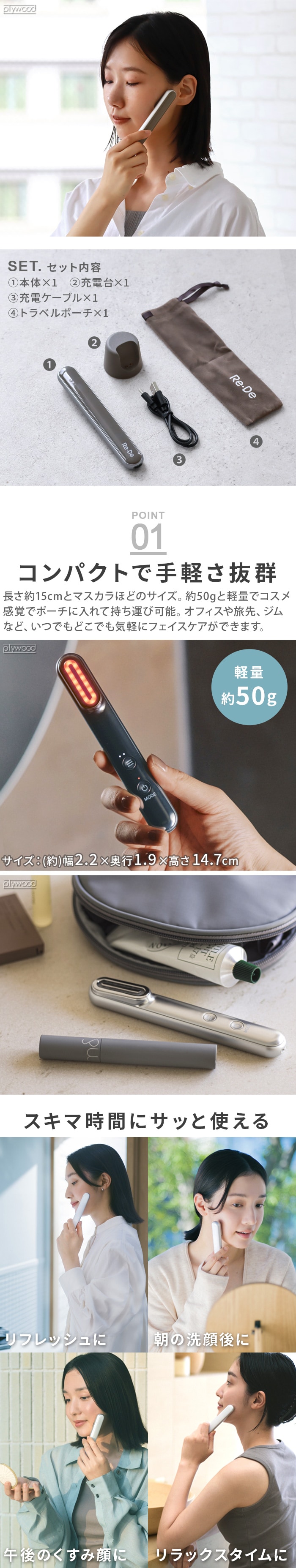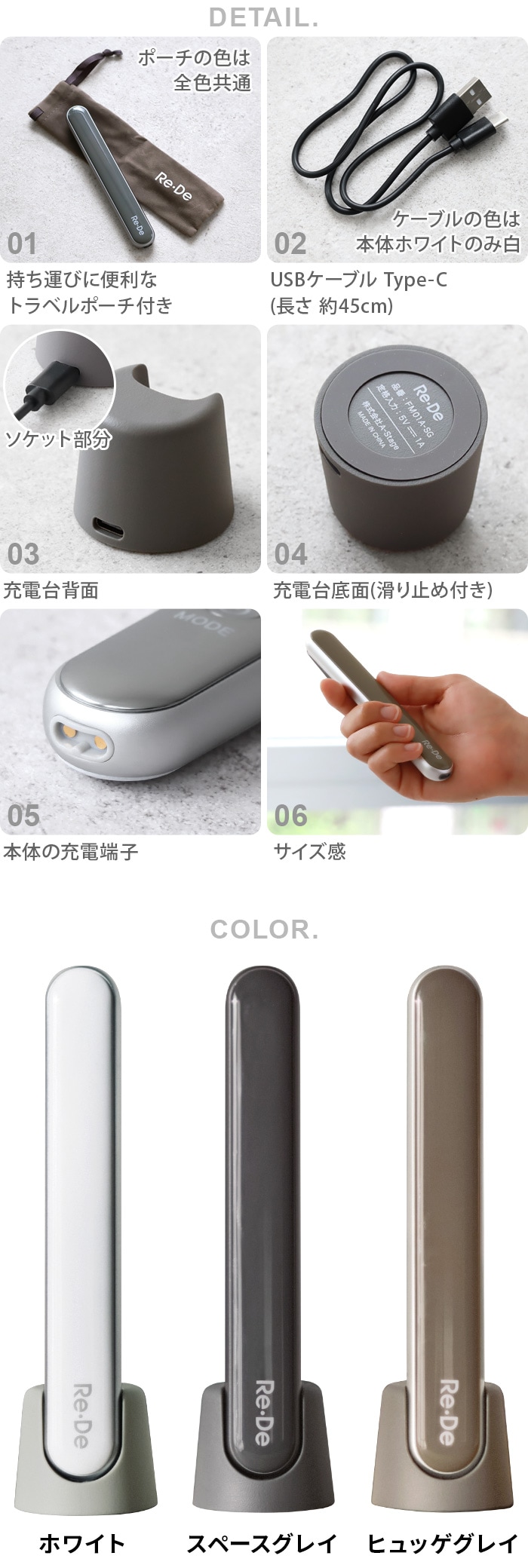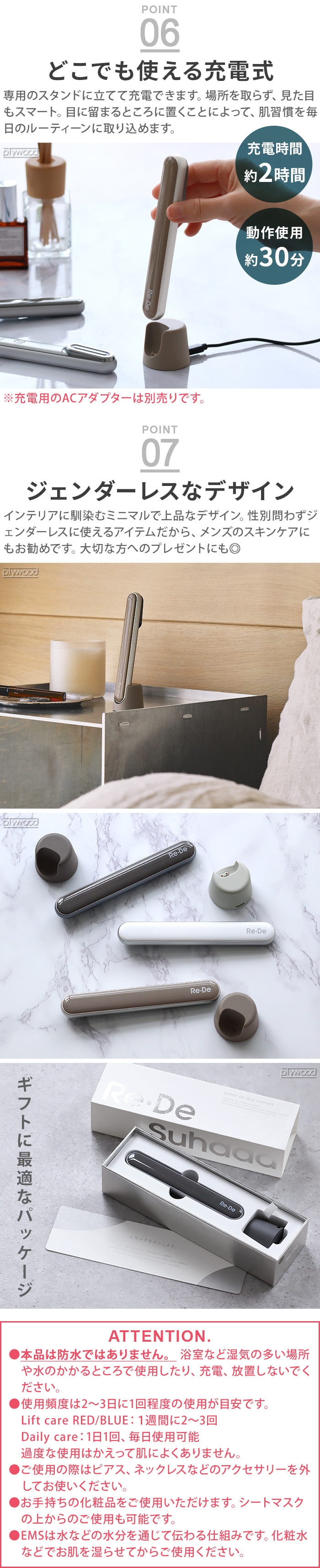 Re・De Suhada リデ スハダ スティック美顔器 ≪ホワイト FM01A≫ リフトアップ LED ems 美容家電 顔 音波振動 温熱 目元 引き締め 男女兼用 レディース メンズ スキンケア 充電式 軽量 コンパクト 旅行 出張 ポーチ付き シンプル プレゼント