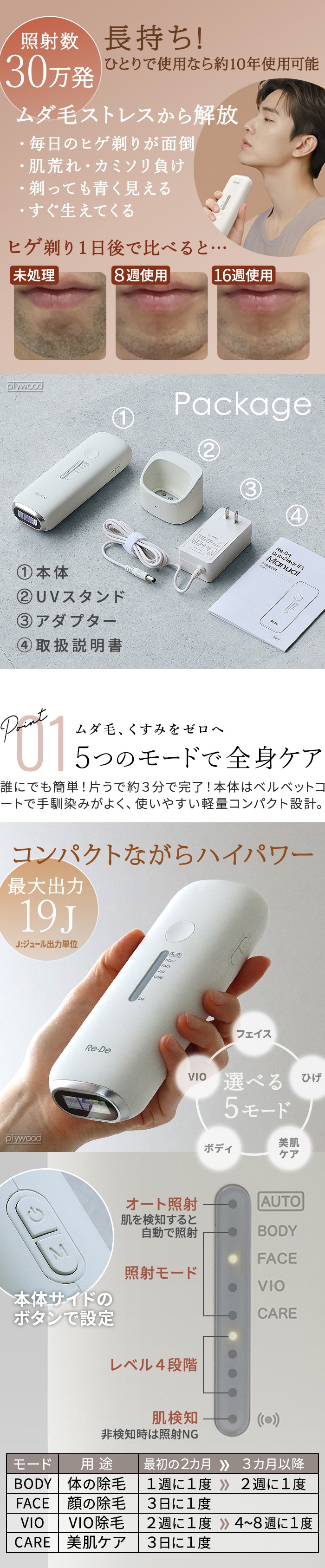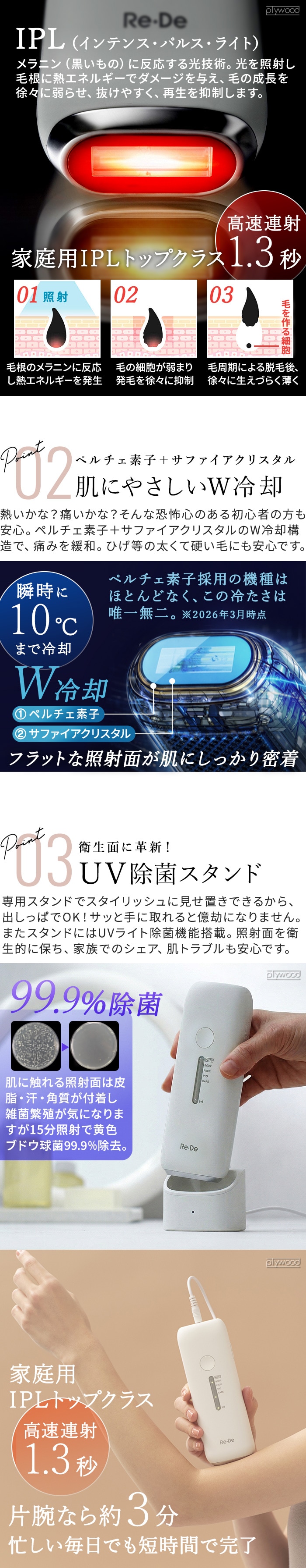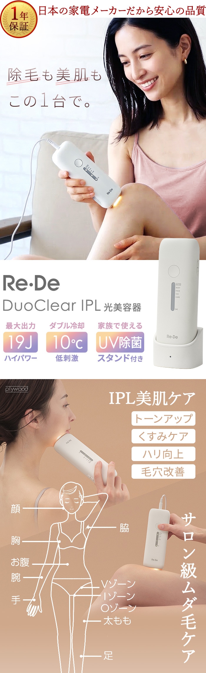 Re・De DuoClear IPL 光美容器 ≪BR01A-WT≫ ムダ毛ケア ムダ毛処理 除毛 VIO ひげ 髭 美肌ケア トーンアップ くすみケア ハリ感向上 毛穴印象改善 ギフト プレゼント