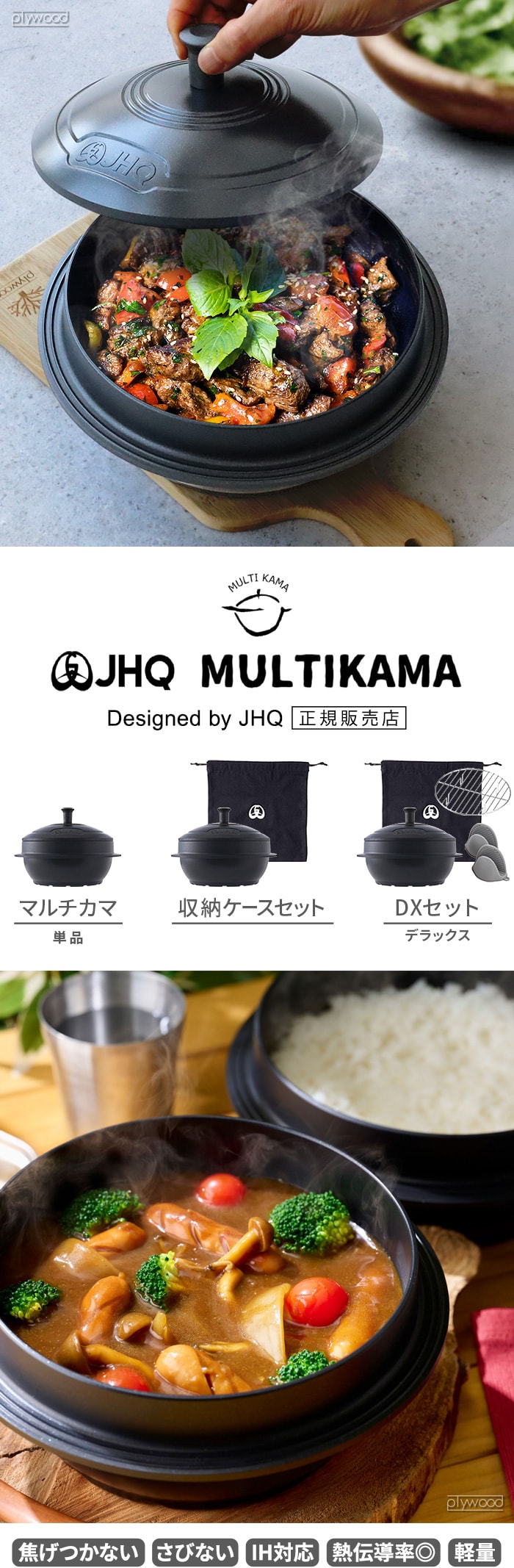 正規品 JHQマルチカマ 収納ケースセット ≪JKC002≫ お釜 鍋 なべ 調理器具 炊く 煮る 揚げる 焼く 炒める 蒸す カマソッ かまど鍋 鉄鍋 土鍋 軽量 直火 ガス IH対応 安全 ギフト