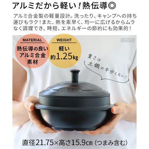 | かま:(約)直径21.7×高さ8.7×底面直径14.2cm ふた:(約)直径18.8×高さ7.2cm(取手含む) |