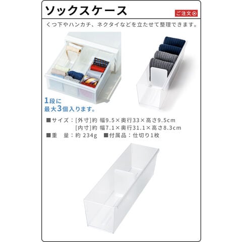 Like-it ライクイット クローゼットシステム ソックスケース ≪クリア CS-P10≫ ドロワーオーガナイザー 立てる収納 間仕切り シンプル プラスチック 靴下 小物入れ スライド式仕切り板 半透明 日本製 洋服収納 引出し インテリア 収納棚