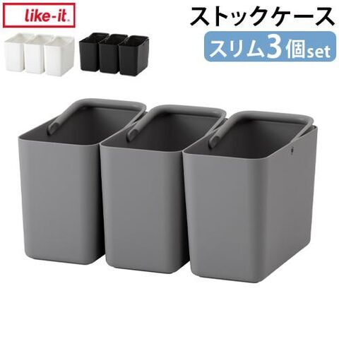 Like-it ハンドル付きストックケース スリム3P ≪グレー LBK-53 3P≫ ライクイット 米びつ用 取っ手付き おしゃれ 日本製 抗菌加工 保存容器 ストッカー 収納ケース シンク下 お米入れ 米櫃 シンプル