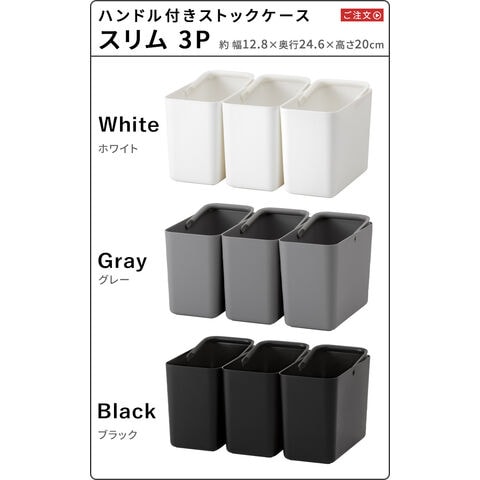 Like-it ハンドル付きストックケース スリム3P ≪ブラック LBK-53 3P≫ ライクイット 米びつ用 取っ手付き おしゃれ 日本製 抗菌加工 保存容器 ストッカー 収納ケース シンク下 お米入れ 米櫃 シンプル