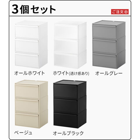 ライクイット クローゼットシステム ワイド引き出し Mサイズ 3個セット ≪オールホワイト CS-WD2 3P≫ Like-it 衣装ケース 収納ボックス プラスチック 引き出し 3段 日本製 チェスト 棚 おしゃれ スタッキング 洋服収納 引出し スタックボックス キャスター取付可