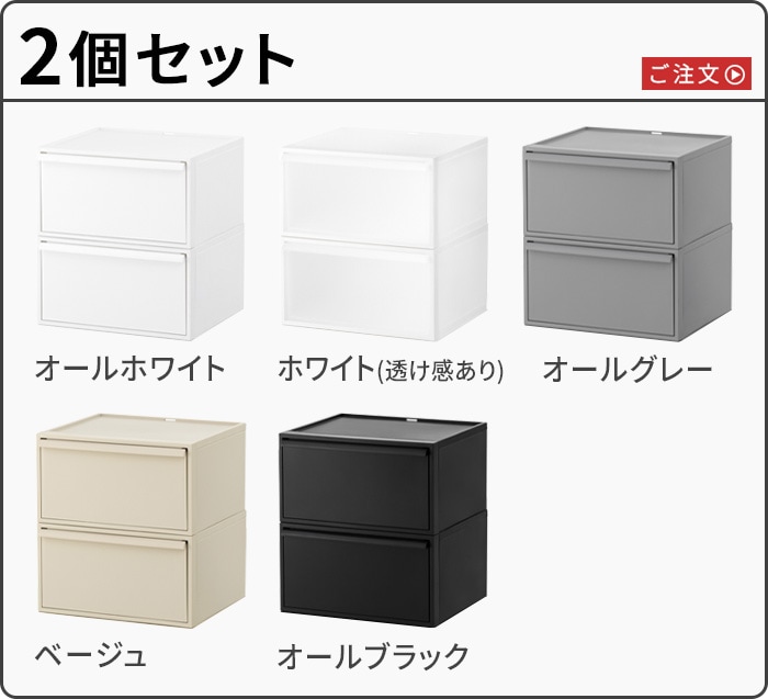 ライクイット クローゼットシステム ワイド引き出し Mサイズ 2個セット ≪オールブラック CS-WD2 2P≫ Like-it 衣装ケース 収納ボックス プラスチック 2段 日本製 チェスト 棚 おしゃれ スタッキング 洋服収納 引出し スタックボックス キャスター取付可