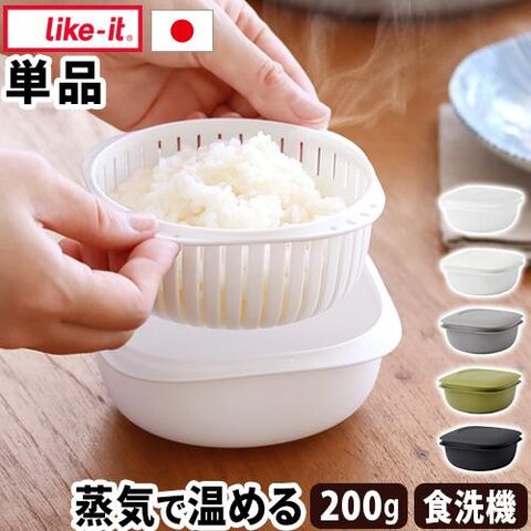 Like-it 蒸気であたためる冷凍ごはん容器 単品 ≪ホワイト LBK-21≫ ライクイット 保存容器 一膳分 二重構造 冷蔵 200g 角型 ザル 電子レンジ対応 食洗機対応 日本製 耐熱 水切り 小分け おしゃれ キッチン雑貨 新生活