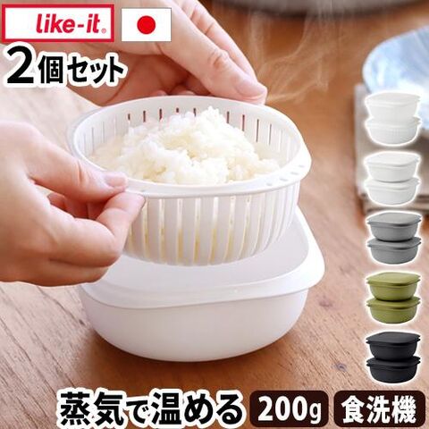 Like-it 蒸気であたためる冷凍ごはん容器 2個組 ≪ホワイト LBK-21 2P≫ ライクイット 保存容器 一膳分 二重構造 冷蔵 200g 角型 ザル 電子レンジ対応 食洗機対応 日本製 耐熱 水切り 小分け おしゃれ キッチン雑貨 新生活