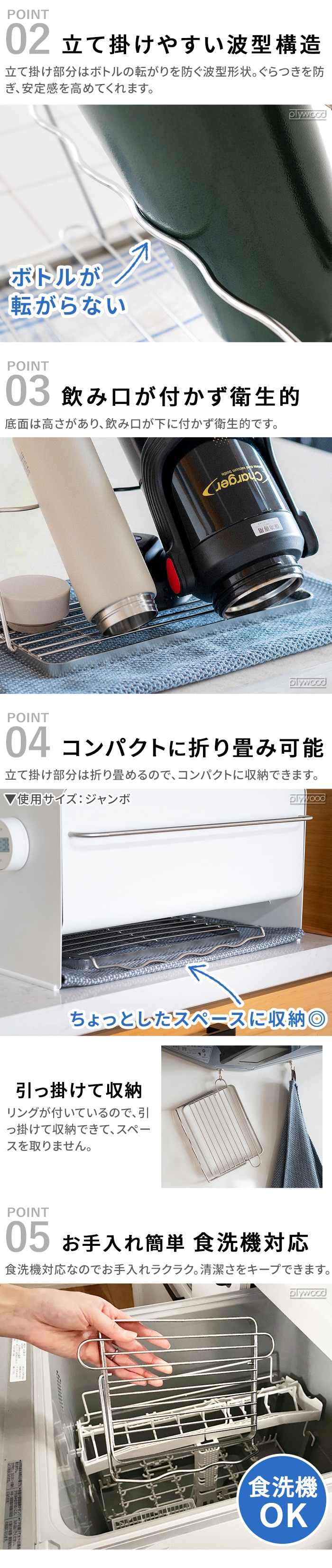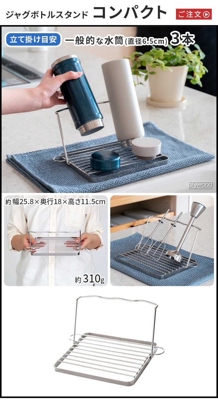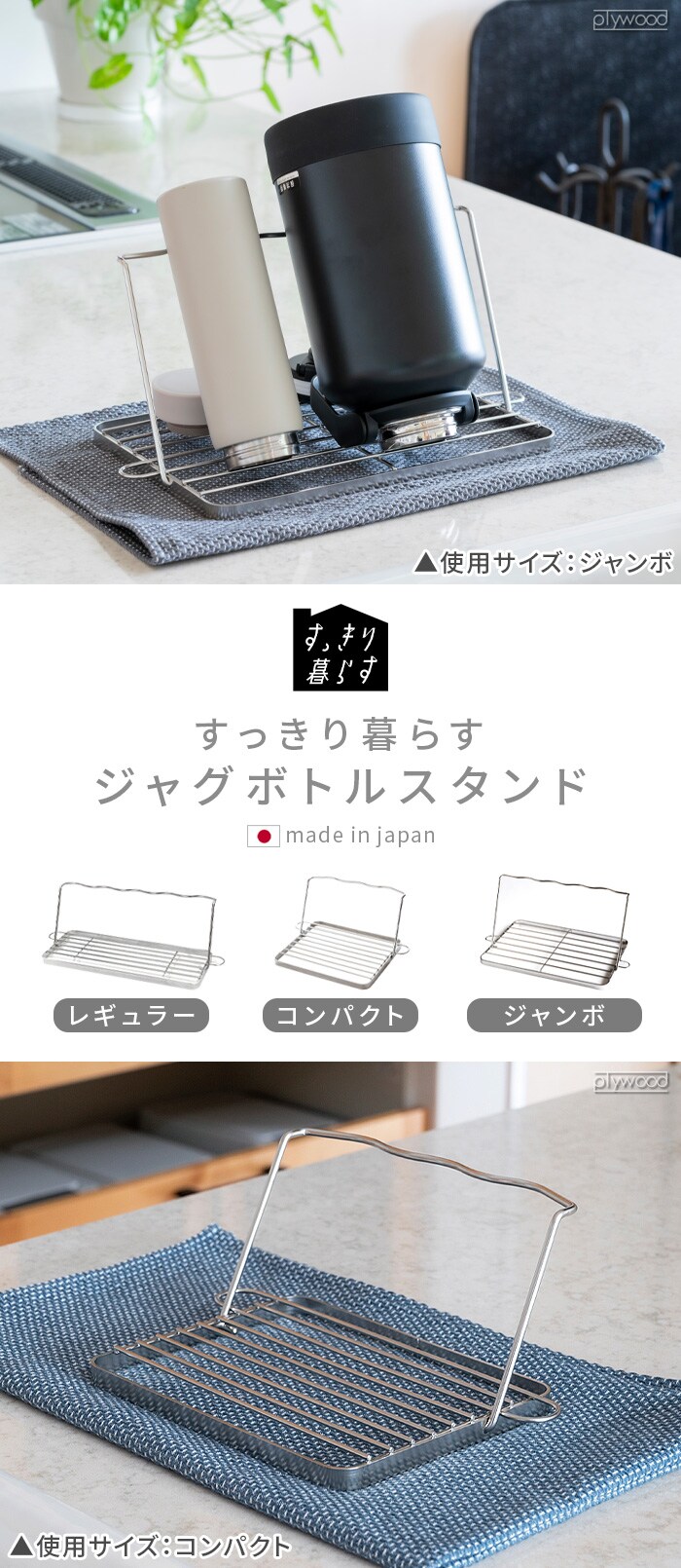 bws SELECTION すっきり暮らす ジャグボトルスタンド ≪レギュラー 700166≫ ビーワース 折りたたみ 水切りかご ラック 燕三条 日本製 シンク上 食洗機対応 水筒 マグボトル タンブラー 哺乳瓶 洗い物 乾燥 ギフト