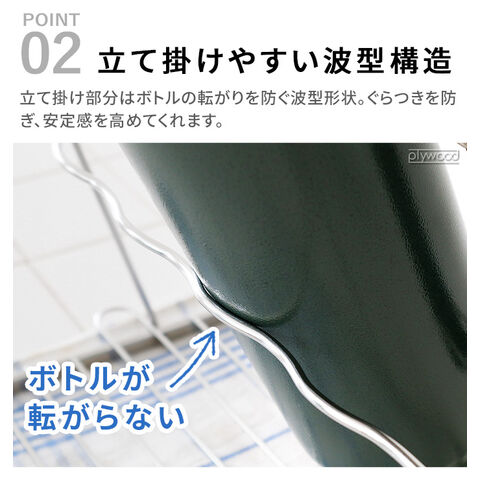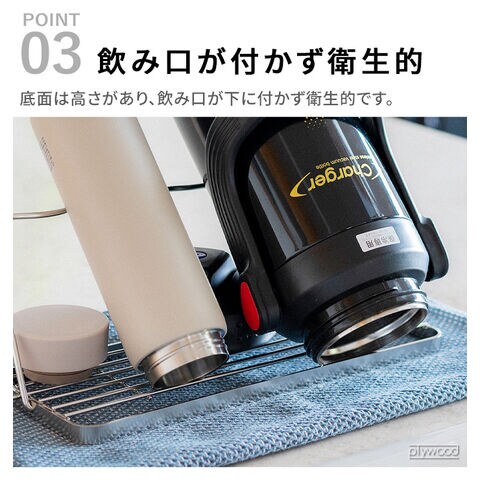 | 本体の上部に、シリアルナンバーシールが貼り付けてあります。これは生産管理上、必要なシリアルナンバーです。剥がして使用説明書内の指定の位置に貼っていただくか、分かりやすい場所に貼り付けて、なくさないように大切に保管してください。 水滴が垂れるのが気になる方は、市販のふきんなどを下に敷いた状態でご使用ください。 製造工程上、製品の特性上、若干のガタツキがある場合がありますが、使用上問題はありません。 ひっかけて収納することができます。 容量2リットルより大きいジャグボトルや水筒、高さのあるものは置かないでください。 片寄った荷重をかけないでください。またコップ等を必要以上に積み重ねて製品の上に置かないでください。バランスを崩して転倒する恐れがあります。 吸水タオルは付きません。 |