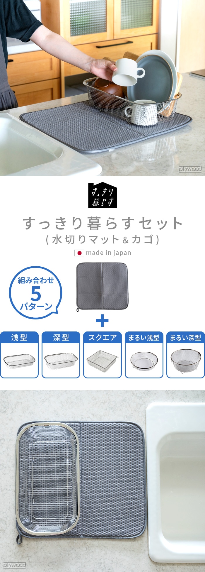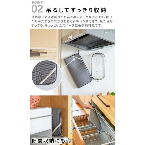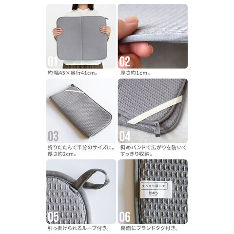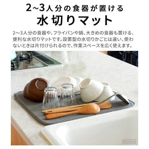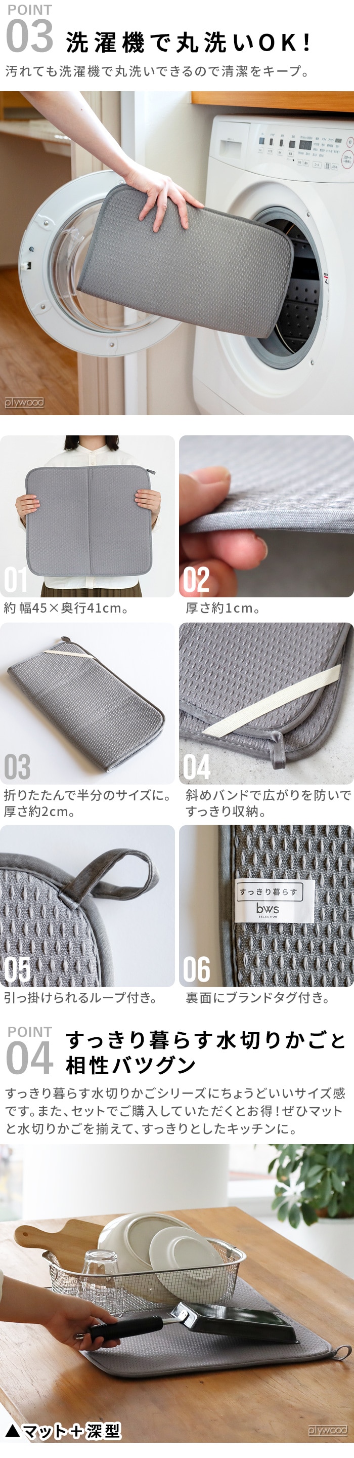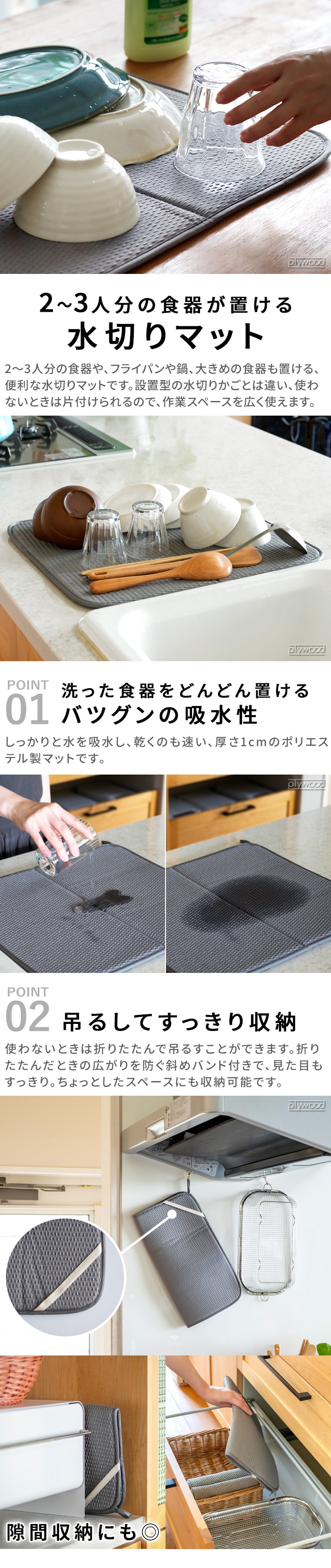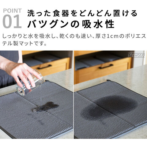 bws SELECTION すっきり暮らす 水切りマット ≪グレー 270026≫ ビーワース セレクション 吸水マット キッチン 洗える 速乾 吸水 折りたためる 吊り下げ収納 食器乾燥マット 水回り ポリエステル 台所 ギフト