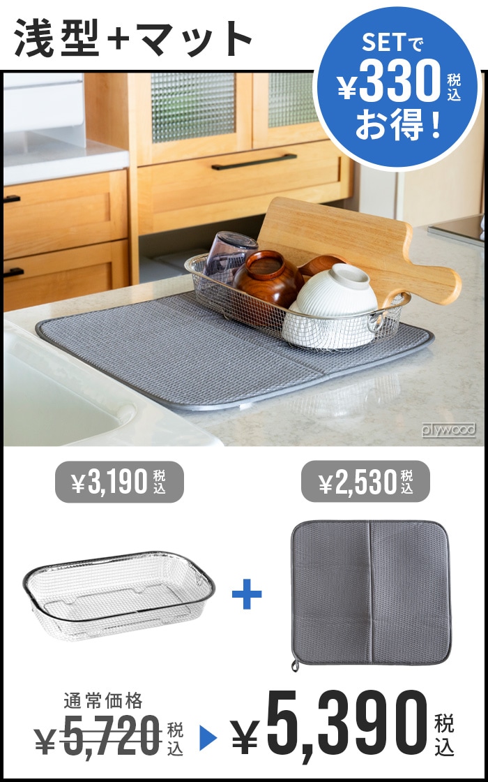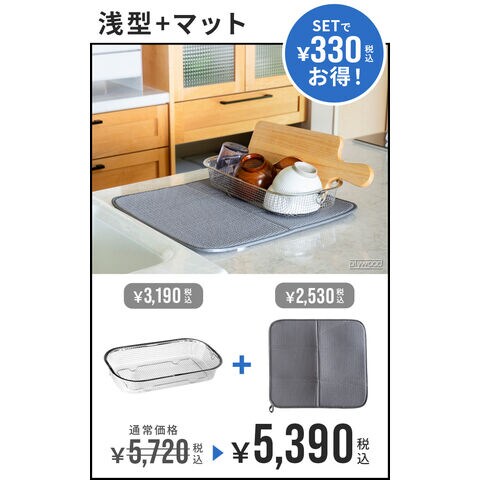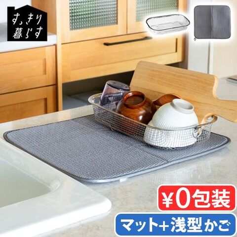 bws SELECTION すっきり暮らす セット ≪浅型かご+マット 270027S≫ ビーワース セレクション 吸水マット 水切りラック バスケット 脚つき キッチン 洗える 速乾 水回り シンク周り ポリエステル ギフト