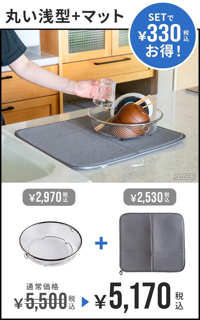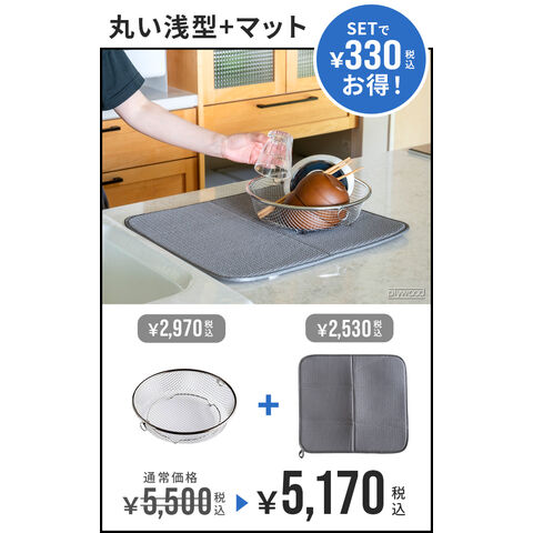 bws SELECTION すっきり暮らす セット ≪まるい浅型+マット 270030S≫ ビーワース セレクション 吸水マット 水切りラック バスケット 脚つき キッチン 洗える 速乾 水回り シンク周り ポリエステル ギフト