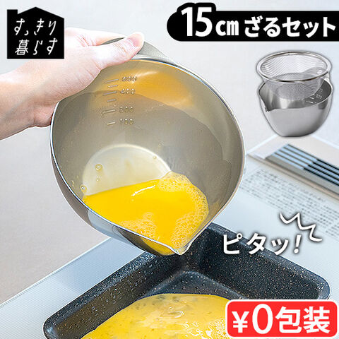 bws SELECTION すっきり暮らす キレッキレボウル ≪15cm ざるセット OZ-165005S≫ ビーワーススタイル 600mL 燕三条 ステンレスボウル 目盛り 日本製 ボール 引っ掛け ギフト プレゼント