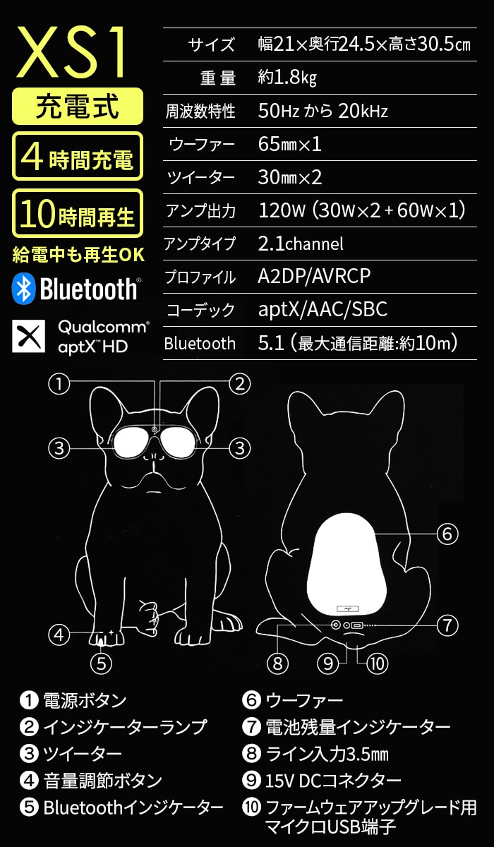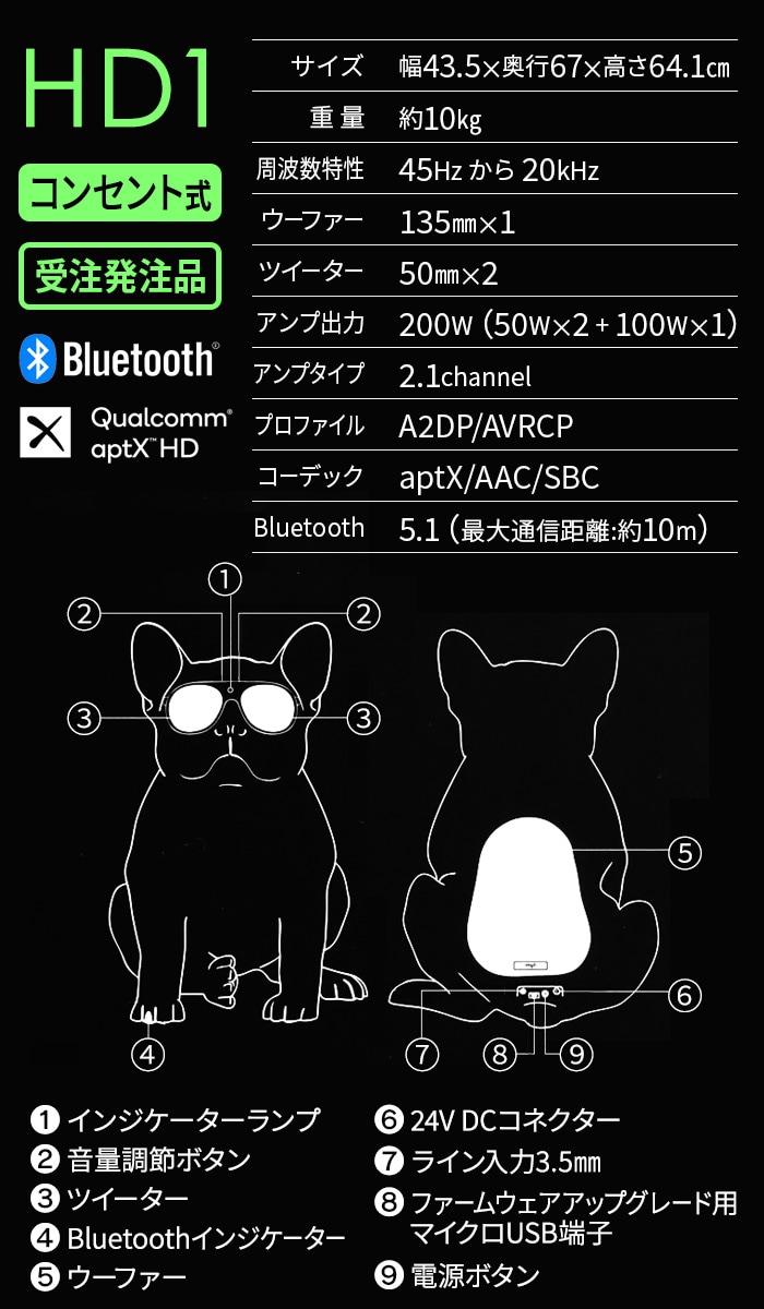【メーカー直送品】 正規品 エアロブル Aerobull HD 1 据え置きタイプ コンセント式 ≪Matte_Black AE-1000≫ ワイヤレススピーカー フレンチブルドッグ bluetooth 高音質 インテリア 犬 ユニーク おすすめ おしゃれ 持運び