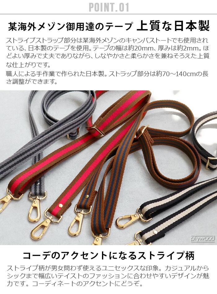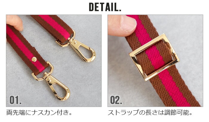 | ストラップ部分:(約)幅2×長さ70~140cm 金具含む:(約)幅2.8長さ80~150cm |