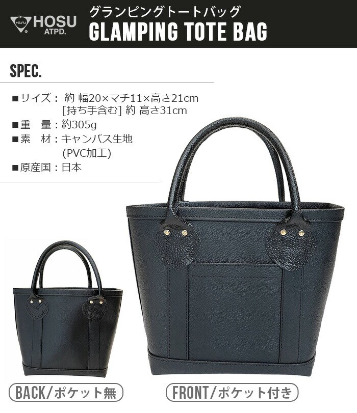 ホス グランピングトートバッグ HOSU GLAMPING TOTE BAG 《スモールサイズ》 トートバッグ キャンバス 小さめ レディース メンズ ブランド 保護犬 日本製 ブラック 黒 大人 キャンバス生地 高級感 PVC加工