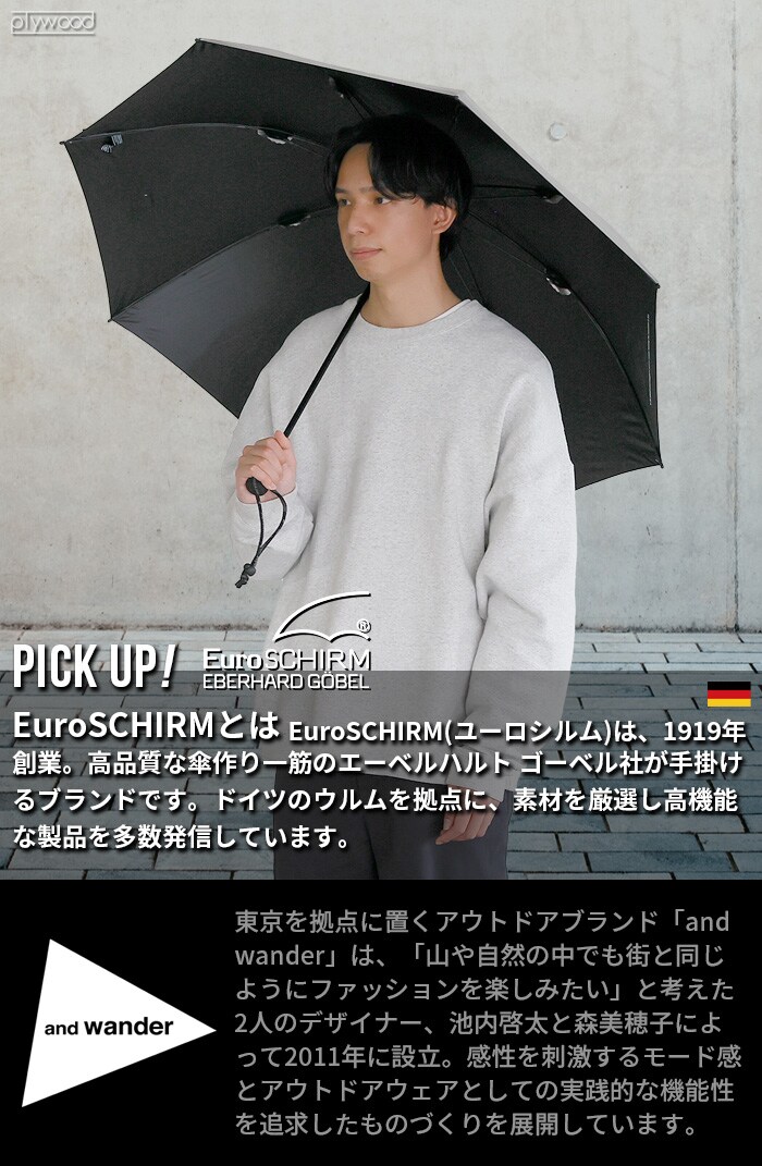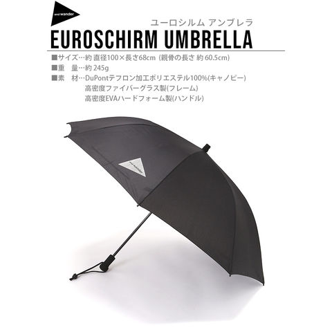 アンドワンダー ユーロシルム アンブレラ and wander EuroSCHIRM umbrella ≪ブラック 3977218≫ 傘 メンズ レディース 男性 女性 大きい傘 丈夫 アウトドア キャンプ 登山