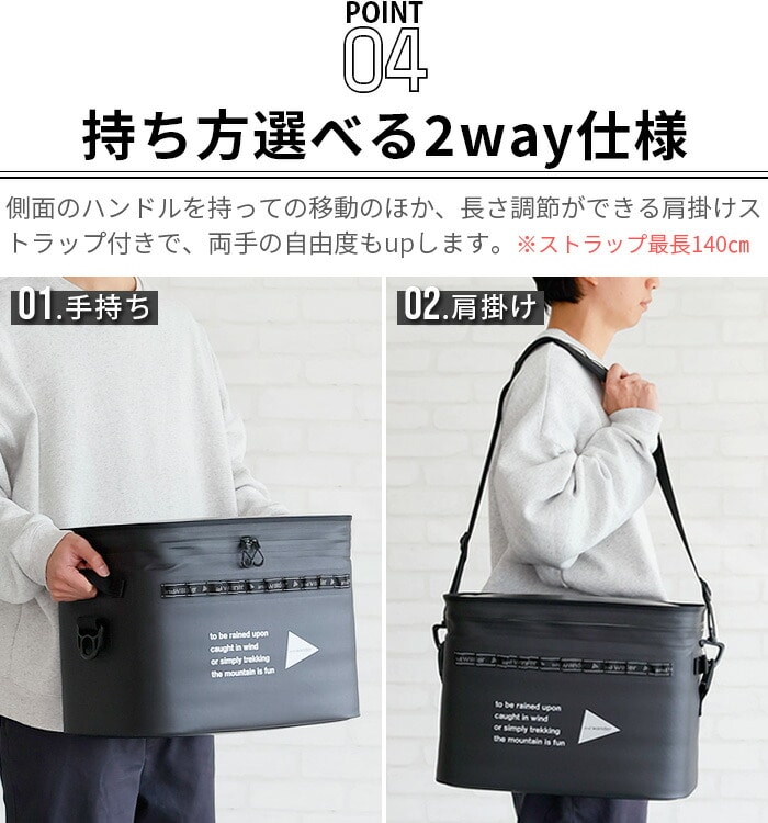 | 肩掛けストラップ付き ライナーのTPUラミネートフィルムはアメリカのFDA食品基準に準拠した素材をしています。 2Lペットボトルは横向きに入れてください。 |