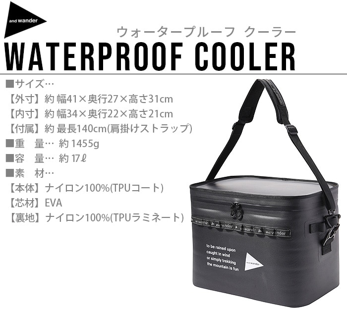 アンドワンダー ウォータープルーフ クーラー and wander waterproof cooler ≪3977204≫ 17l クーラーボックス 小型 防水 軽量 保冷 保冷力 保冷バッグ 肩掛け ショルダーバッグ